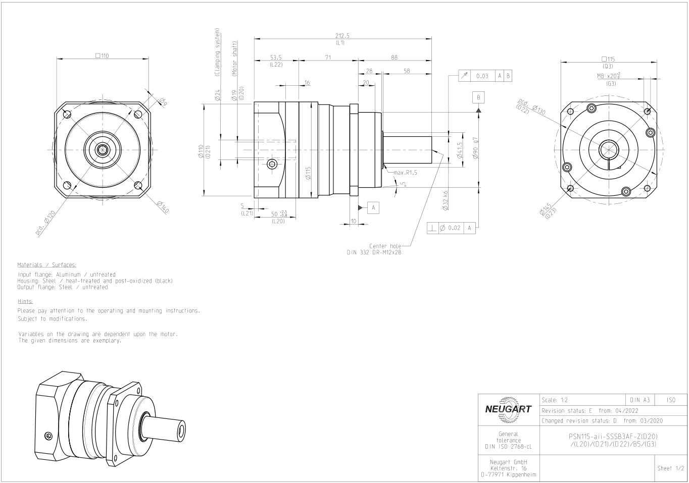NEUGART系列PSN斜齒精密行星減速機采用高精度斜齒,這款減速機可以實現(xiàn)在低噪音的情況下同步運行,這款減速機的齒輪嚙合精度高,回程間隙在1-5arcmin,如有定制需要可小于1arcmin。PSN減速機工作時,在軸承高負(fù)載的情況下振動降低,可提高表面工件的加工質(zhì)量。PSN減速機全系列圖紙下載,CAD圖紙,三維模型等圖紙皆可聯(lián)系技術(shù)在線下載,提供所需數(shù)據(jù)參數(shù),可提供全系統(tǒng)產(chǎn)品運動時動態(tài)數(shù)據(jù)和負(fù)載圖示。